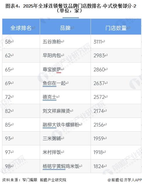 超20家中式快餐企业上榜全球连锁餐饮品牌门店数TOP100