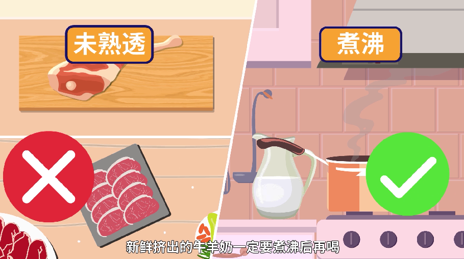 ②普通市民应通过正规渠道购买经检疫合格的肉类及奶制品。不喝生奶,不吃未煮熟的牛羊肉,生熟菜板、刀具分开使用,避免交叉污染。