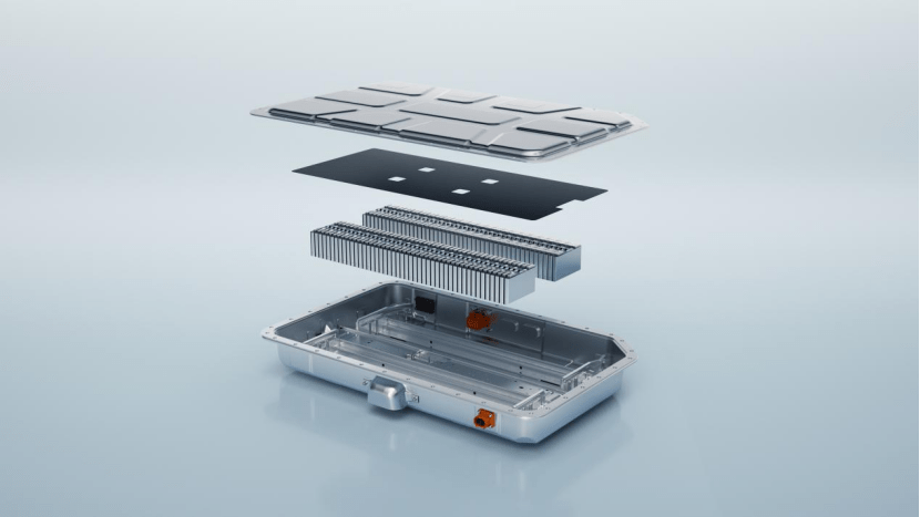 可以看到电池的布置方案位于底盘下方,与日系布置于后座底部的方案有所不同,事实上整个电池Pack的内部电芯布置是十分宽松的,多出的空隙是留给碰撞中电池Pack的溃缩,避免引发电芯热失控。
