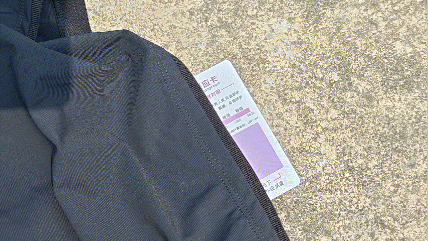 ▲可以看出,在一个紫外线辐射强度达到1000μW/cm²以上的大晴天,北归线防晒衣遮挡区域完全没有紫外线透入,可以实现可靠防晒(防晒指数可以达到UPF50+,实测UPFav287.7)。