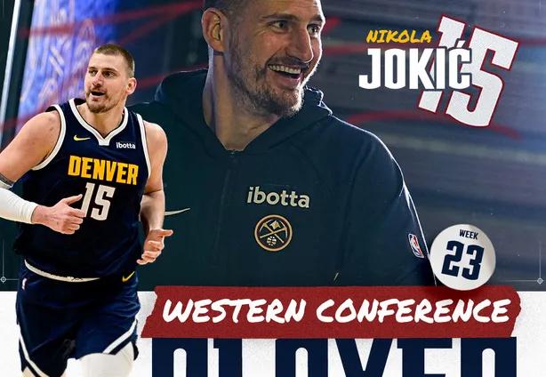 在NBA官方公布的最新一期周最佳球员榜单中,掘金队球星尼古拉-约基奇上周凭借着26分17篮板14助攻的场均大号三双数据,以及率队4战全胜的成绩成功当选(第23周)西部周最佳球员。