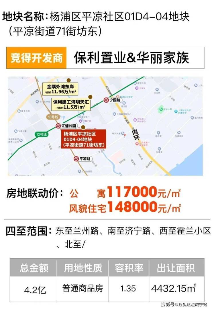 ✅蘭桂坊售楼处电话:400-8787-740✅︎✅︎✅2023年12月,第四轮土拍中,华丽家族&保利以总价41885万元,拿下了杨浦区平凉社区01D4-04地块(平凉街道71街坊东),容积率1.35,溢价率0%,楼板价70002元/㎡,装修标准不低于40000元/㎡,房地联动价公寓117000元/㎡,风貌住宅148000元/㎡。