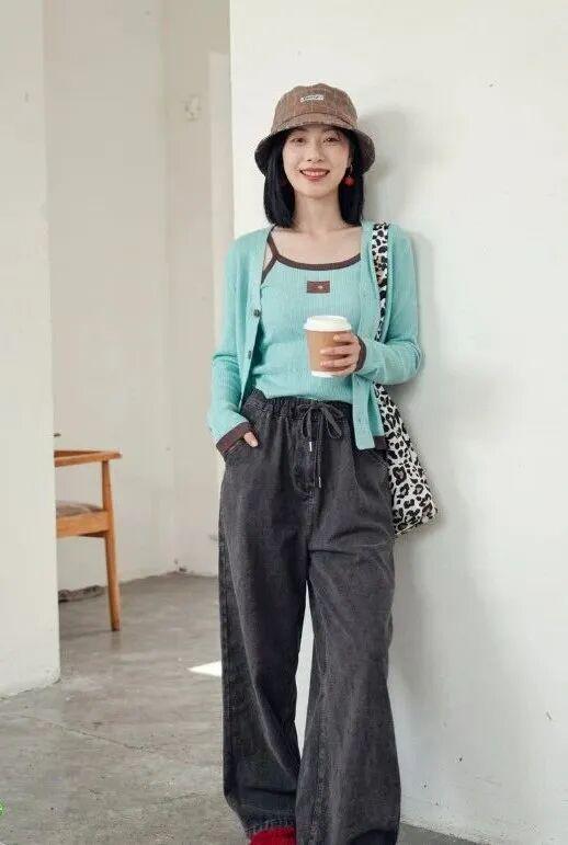 当软糯的开衫遇上粗犷的牛仔裤,休闲随性又减龄,日常逛街穿超级舒服。