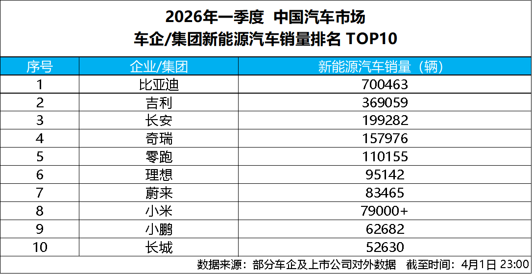 4 月 1 日,比亚迪发布 2026 年 3 月产销数据,单月总销量达300222 辆,强势突破 30 万辆大关,斩获中国车企销量冠军,并连续 58 个月蝉联中国新能源汽车销量冠军,持续稳固行业龙头地位。截至目前,比亚迪新能源汽车累计销量已超1580 万辆,一季度累计销售 700463 辆,以硬核数据印证技术与规模双重实力,助力一季度完美收官。