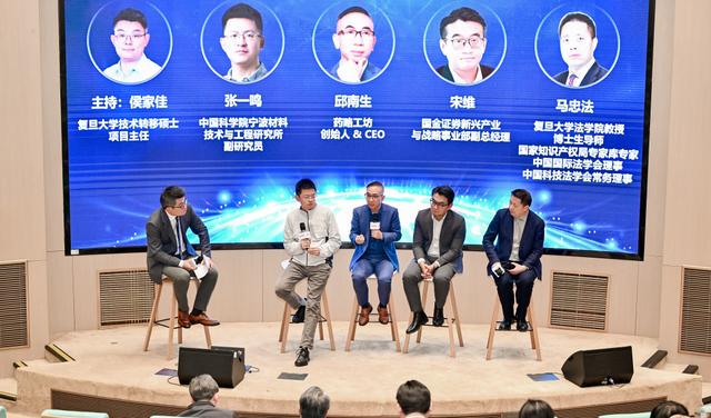 在圆桌讨论环节,围绕“从研发到商业化:技术转移的关键环节与破局之道”这一主题,中国科学院宁波材料技术与工程研究所副研究员张一鸣、药略工坊创始人&CEO邱南生、国金证券新兴产业与战略事业部副总经理宋维与复旦大学法学院教授、博士生导师马忠法展开深度对话,复旦大学技术转移硕士项目主任侯家佳担任主持。