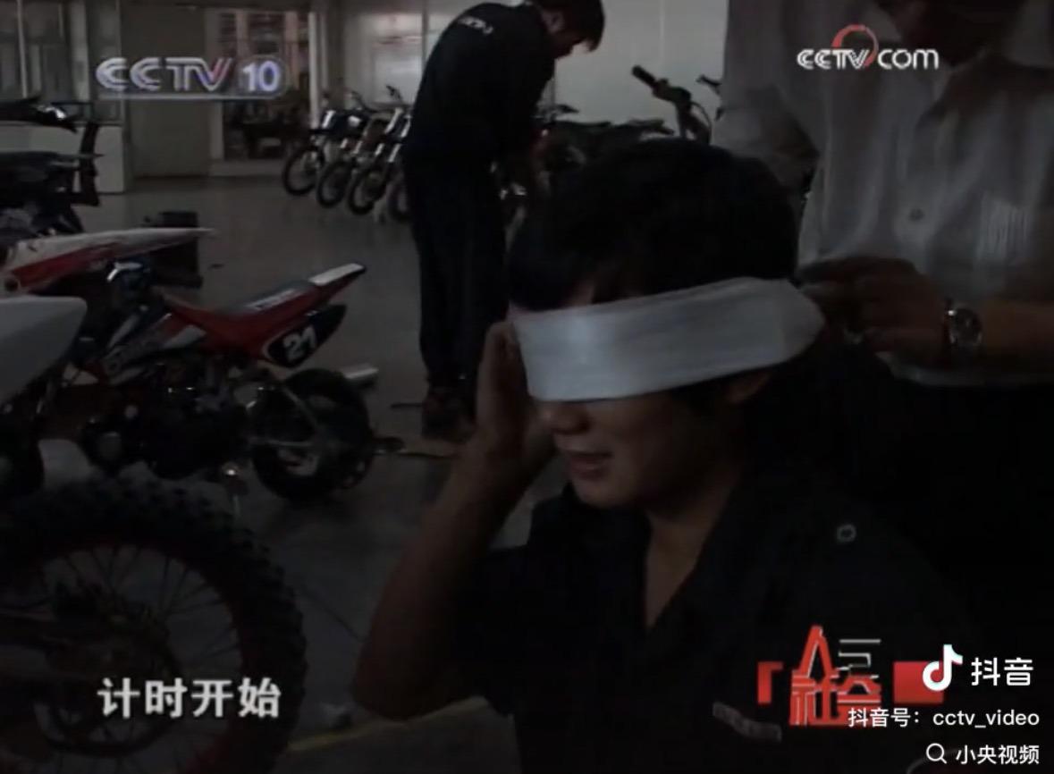 这期节目还记录了张雪蒙眼组装摩托车发动机的画面。张雪说,老板赏识他的原因是自己有一身修车的好本事,他三下五除二将一台摩托车发动机拆得支离破碎后,提出要蒙眼将发动机复原,虽然遭到同事的质疑,但在一个多小时后,张雪真的将发动机组装如初。