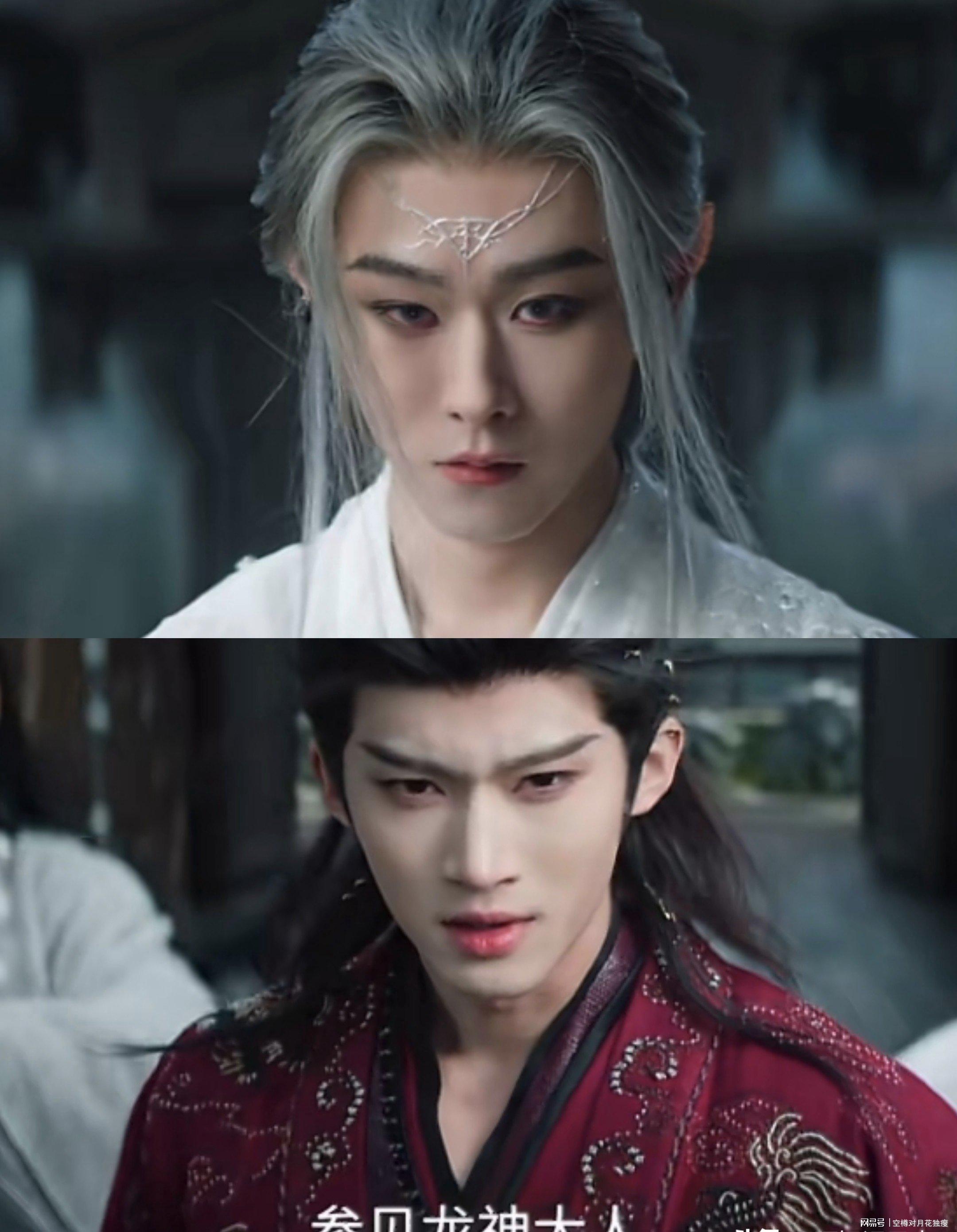 剧里还一直叠人设,一边是单纯少年寄灵,一边是高冷威严龙神。