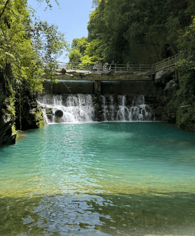 第二天我们走进了恩施石门河地心谷。这里被誉为“地球最美的伤痕”,峡谷幽深,河水碧绿,两岸绝壁千仞。沿着悬崖栈道前行,脚下是万丈深渊,抬头是一线天光,那种震撼难以用言语形容。孩子一开始有些害怕,但在我们的鼓励和小吕的引导下,很快就适应了,还主动趴在栏杆上往下看,寻找谷底游动的小鱼。景区赠送的空中魔毯体验非常独特,站在透明玻璃上俯瞰峡谷,仿佛悬空行走,既刺激又安全。下午我们驱车前往黔东北峡谷,这里的玻璃桥横跨两山之间,桥下是奔腾的河水,视野开阔,是拍照的绝佳位置。晚上品尝了当地特色餐,土家腊肉和合渣让全家人都赞不绝口。