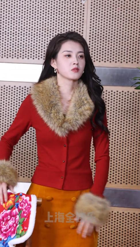 郭宇欣穿了一件地道的东北大花袄,红底衬着彩色碎花,妥妥的东北风。