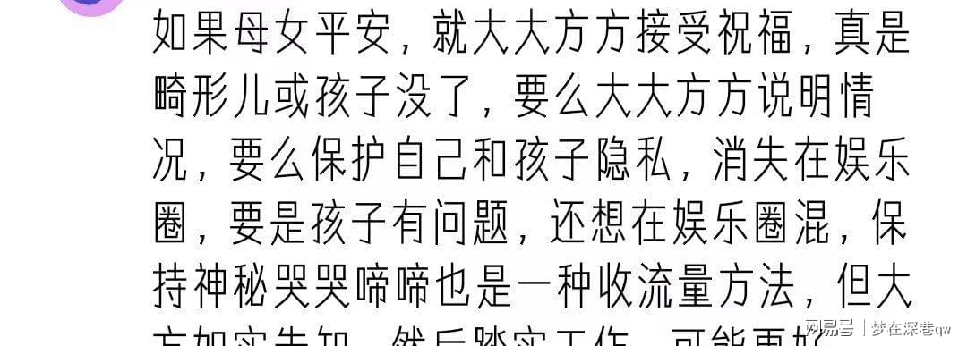 可谁能想到,她生孩子的时候突然传出来,孩子刚生下来就没了,甚至还是畸形儿的消息。