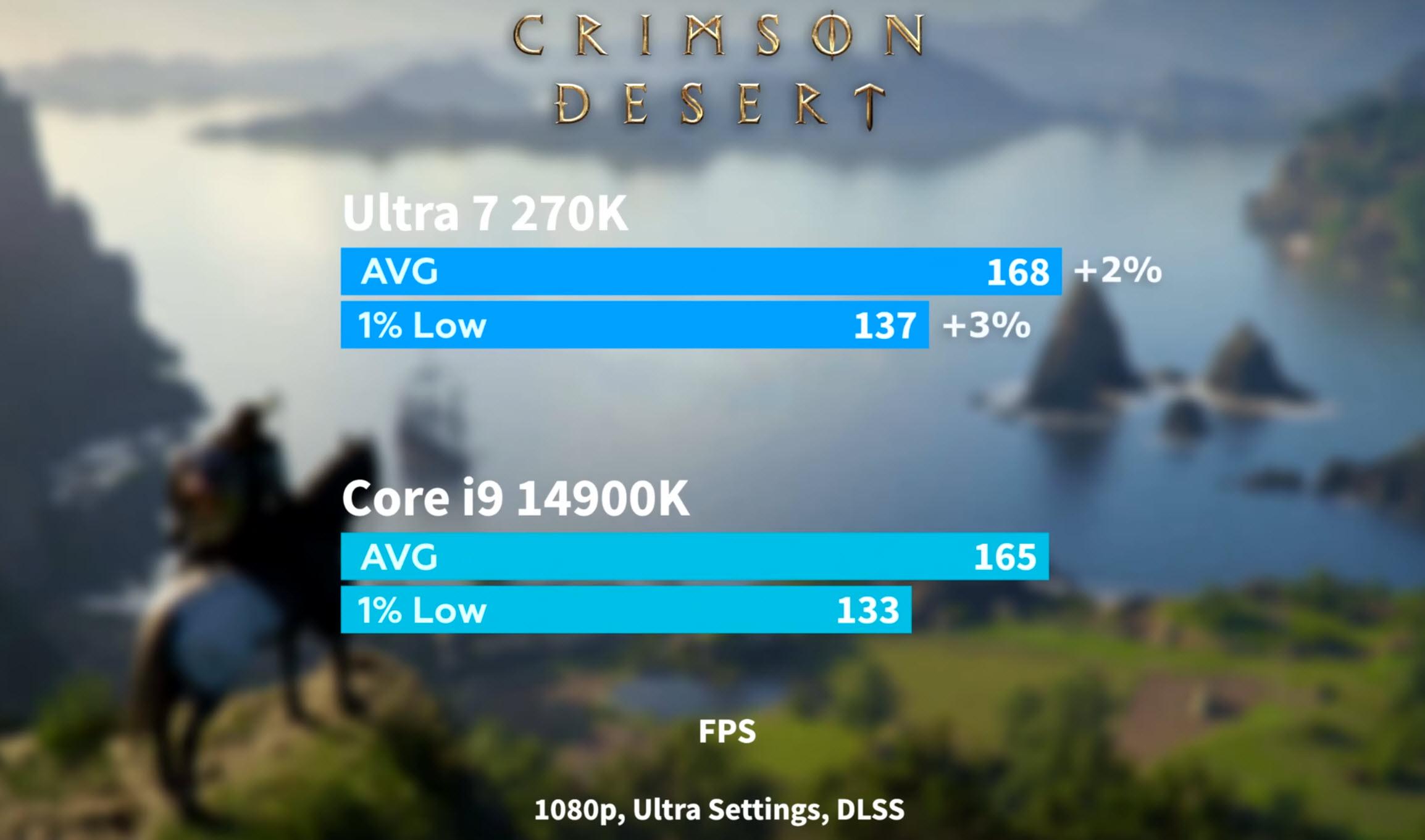 本次测试旨在探究两款处理器在1080P分辨率下的极限性能差异,因此选用了能够最大化CPU负载的最高分辨率画质模式。测试平台中,英特尔(intel)Ultra7 270K PLUS搭配32GB DDR5 7200MHz高频内存,而对比组则是英特尔(intel)CORE I9 14900K处理器搭配DDR5 6000MHz内存。为了确保显卡不成为瓶颈,两组平台均统一搭载了GeForce RTX 5090旗舰显卡,操作系统均为Windows 11,从而确保测试数据能准确反映处理器在《红色沙漠》这种高负载开放世界场景下的真实表现。
