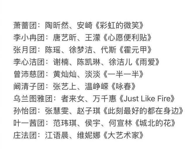 具体分组情况和选曲情况如下: