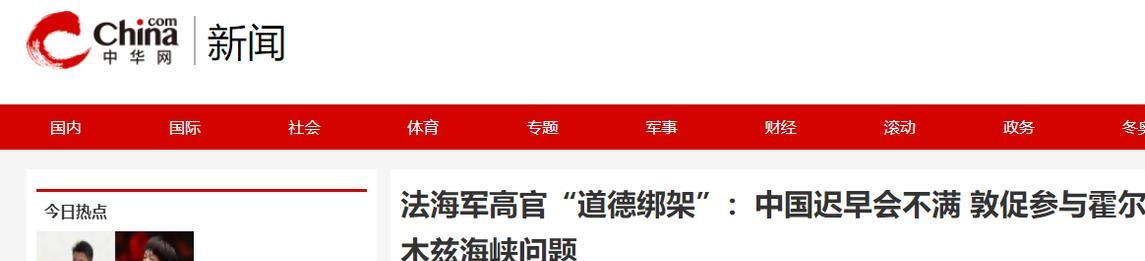 中华网:法海军高官“道德绑架”:中国迟早会不满敦促参与霍尔木兹海峡问题
