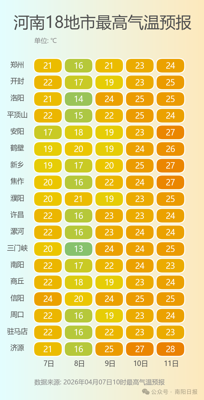 来源:河南省气象台2026年4月7日12时预报