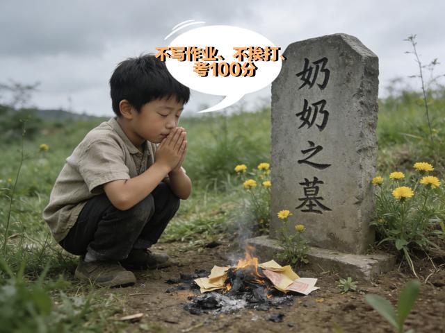 当然,也有让人忍俊不禁的温情时刻。在贵州,一位7岁小男孩跪在奶奶坟前许愿的视频火遍全网。小家伙双手合十,一脸虔诚地喊道:“保佑我不写作业,不挨打,还能考100分!”这一番“异想天开”的童言,把在场的大人都逗乐了。孩子从小由奶奶带大,深知奶奶最疼他,这看似贪心的愿望里,藏着的却是对奶奶最深的依赖和思念。