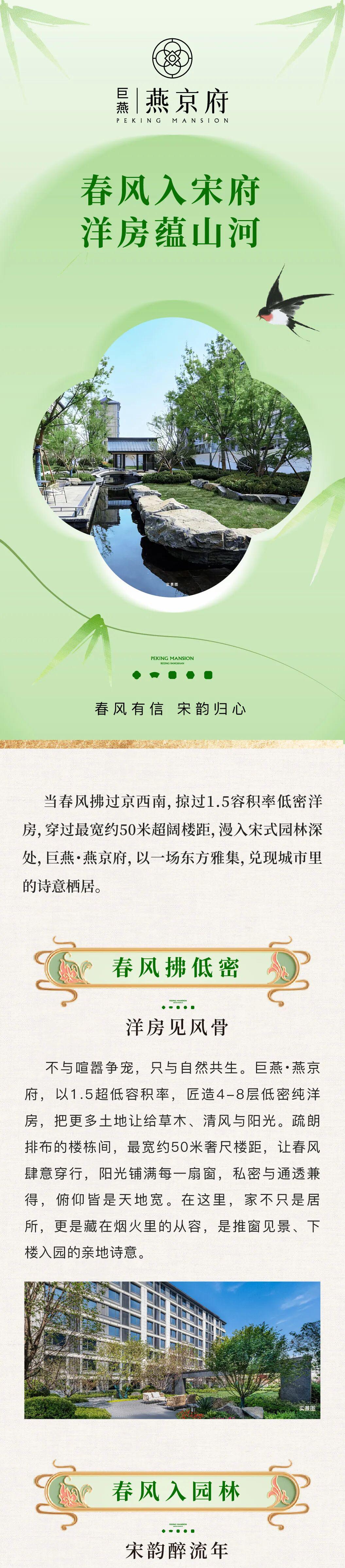 当春风拂过京西南,掠过1.5容积率低密洋房,穿过最宽约50米超阔楼距,漫入宋式园林深处,巨燕·燕京府,以一场东方雅集,兑现城市里的诗意栖居。