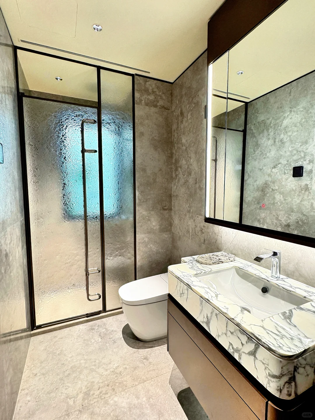 - 材质:大理石地面、木饰面、定制柜体
