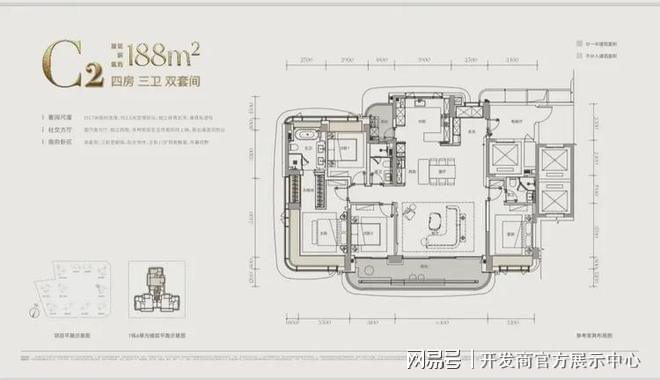 约188㎡(四房三卫双套间):宝中“六边形战士”。集核心地段、顶尖配套、实用空间、优质景观、央企品牌于一身,几乎没有短板,预计将成为竞争最激烈的户型。