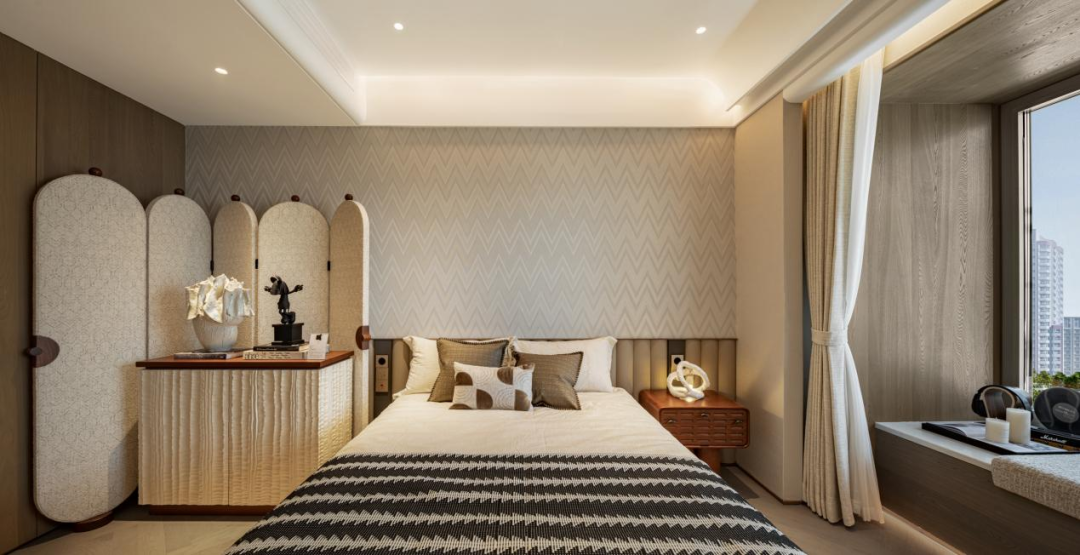 - 104㎡样板宛若一枚稀世的珍珠,以「垂直生活体里的先锋私邸」为定位,精准击中城市新贵人群对「即兴生活」与「舒适居住」的多元需求。