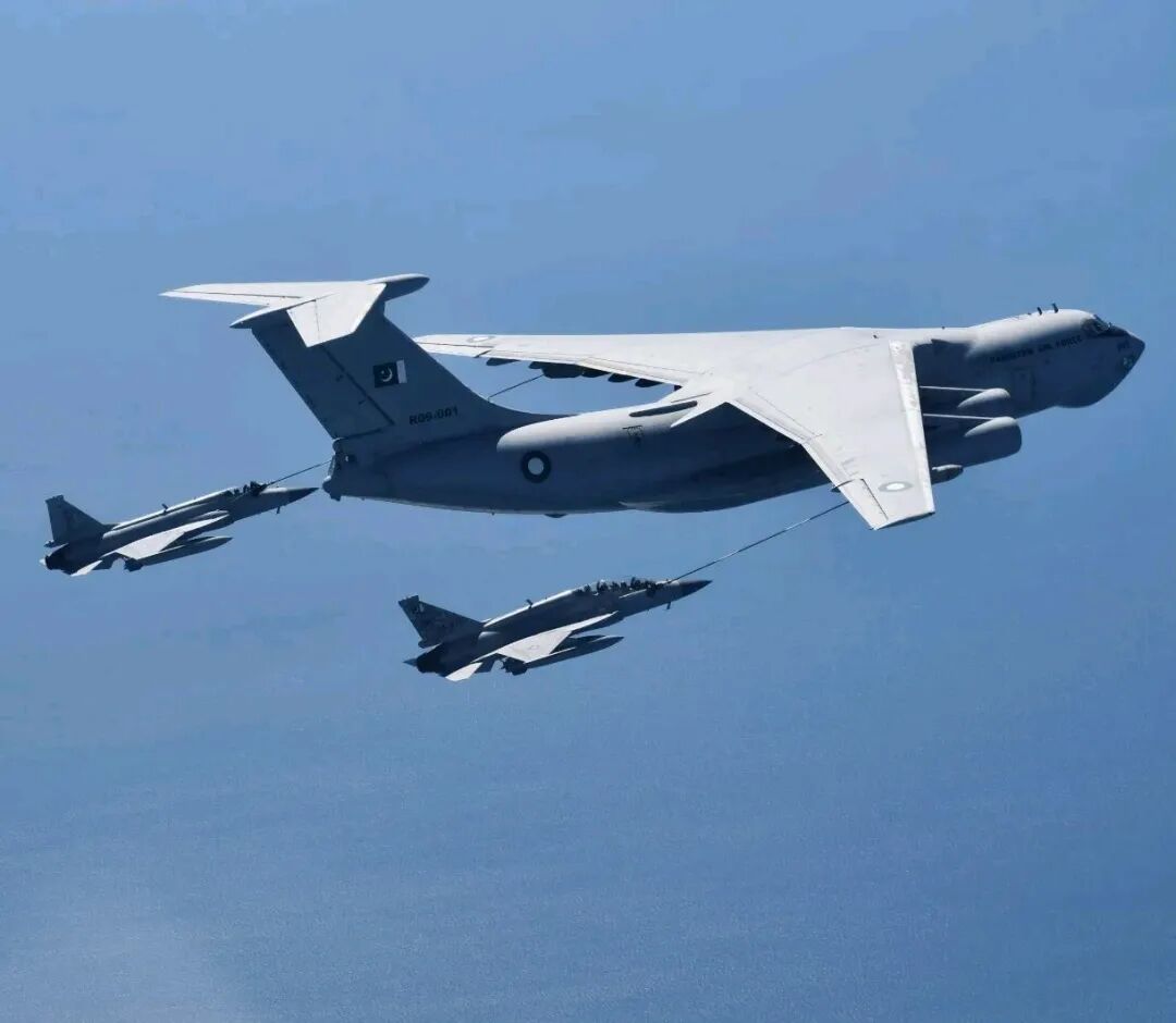 后续动向更是不断升级,巴基斯坦空军两架编号分别为R11-003、R09-001的IL-78MP空中加油机兼运输机,从努尔汗空军基地起飞,经卡拉奇中转后,直扑中东任务区域,持续在巴林、波斯湾上空待命巡航,为巴军主力JF-17枭龙战斗机提供不间断空中加油保障。