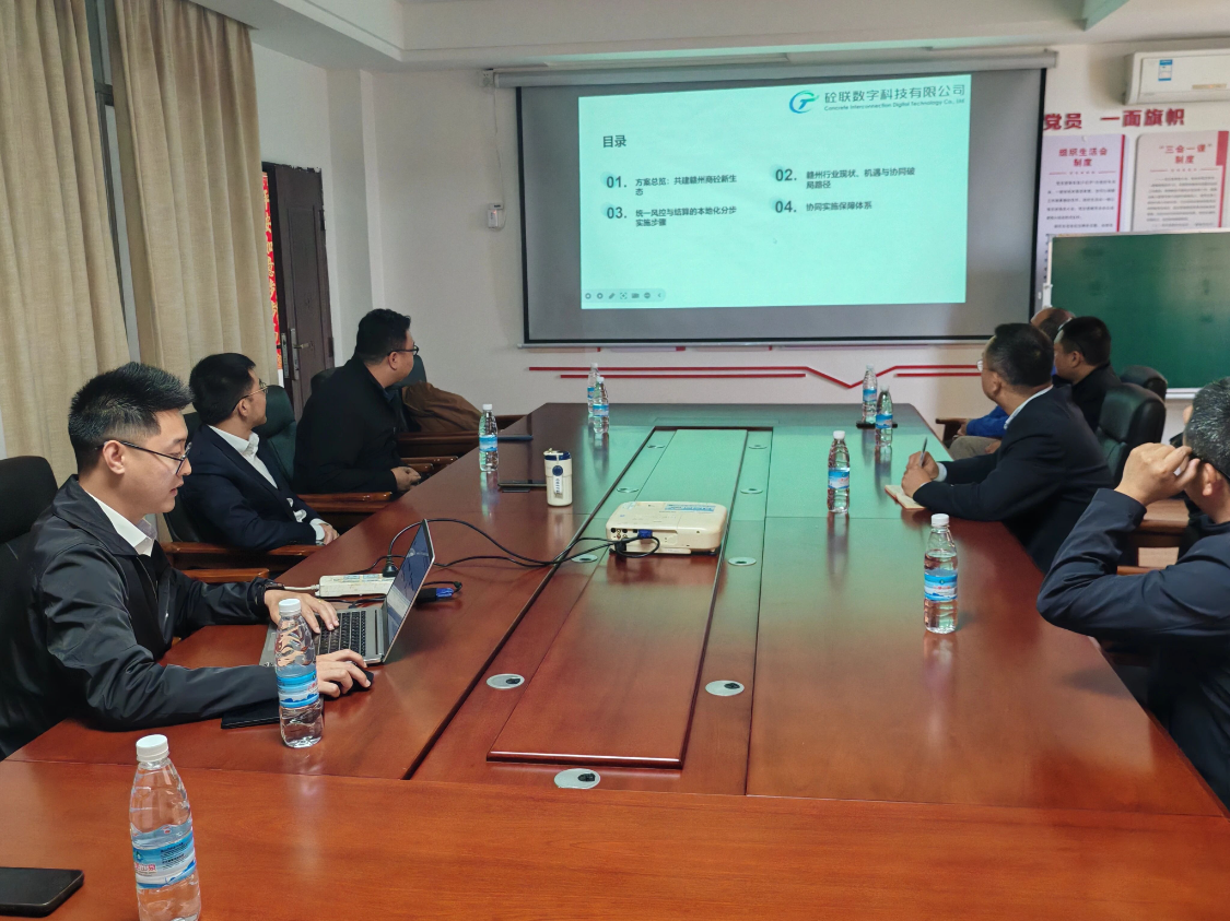 座谈中,砼联科技介绍赣州城市运营整体方案,针对赣州市混凝土行业产能过剩、数字化水平低、资金压力大等痛点,提出搭建中立可信数字底座,对接搅拌站生产、物流数据;打造联合采购中心与共享运力池,降低企业成本;建立统一行业规则,规范市场秩序;并展示智慧调度、全流程质量追溯等成熟数字化功能。