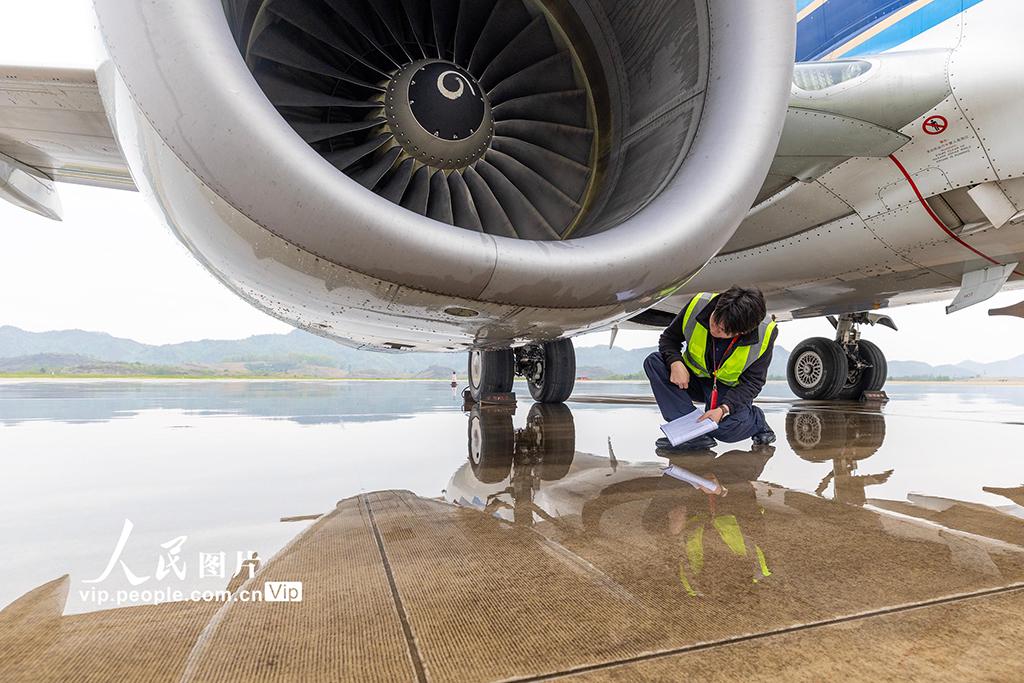 贵州毕节:试飞【5】 2026年4月8日,贵州毕节飞雄机场扩建工程3000米跑道新飞行程序完成实地验证试飞,机场复航筹备进入冲刺阶段,计划7月底恢复航班运行。 本次试飞由毕节飞雄机场委托南方航空贵州公司执行,选用波音737-800型客机,并选派5名飞行员组成机组,严格对照民航规章与技术标准,对新飞行程序的进离场、进近着陆及复飞等关键环节进行全面验证,确保飞行程序安全规范、准确可行。 作为毕节对外开放的重要航空枢纽,飞雄机场完成此次升级后,可满足年旅客吞吐量265万人次保障需求,对提升区域航空运输能力、促进经济文化交流、推动文旅融合与乡村振兴具有重要作用。李华摄(人民图片网)