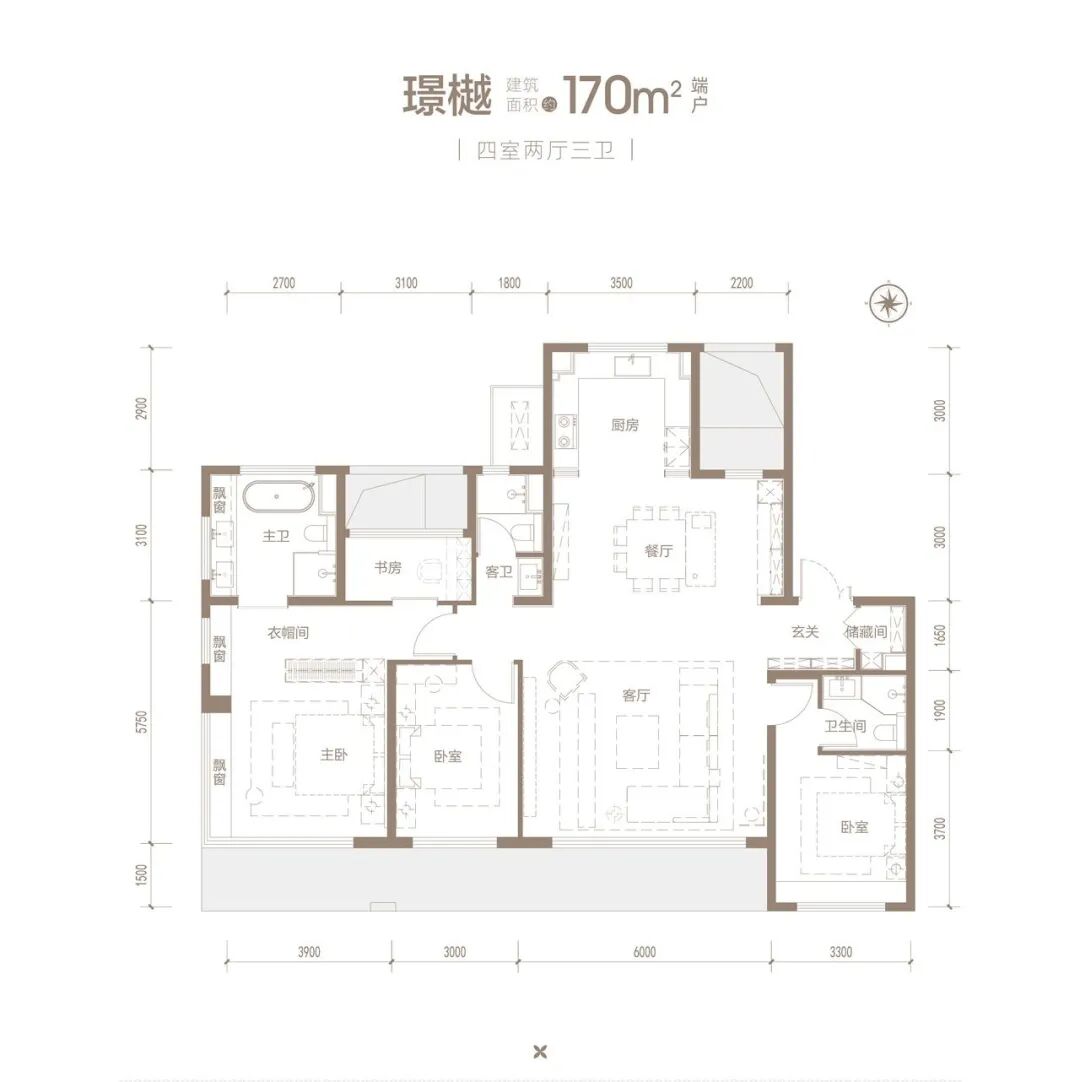 主卧套房豪华:主卧带有独立衣帽间和主卫,且主卫配备浴缸,功能齐全。同时主卧带有多个飘窗,不仅增加了使用面积,还能带来更好的观景体验,极大提升了居住的舒适度和私密性 。