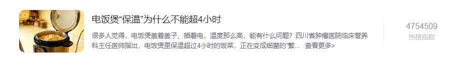 一些人为了省事,把剩饭剩菜放在电饭煲中持续保温,留到下一顿再继续吃,甚至放到第二天再吃。你可能不知道,你以为的“方便、省事”,无意中给身体埋下了健康隐患。