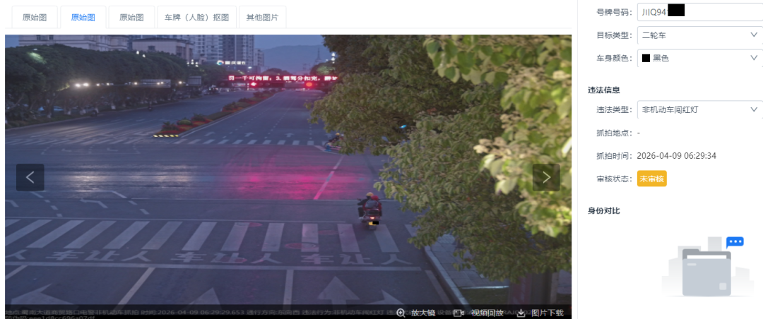 图为自动识别驾驶人未佩戴安全头盔并进行人脸比对 宜宾公安交警 供图