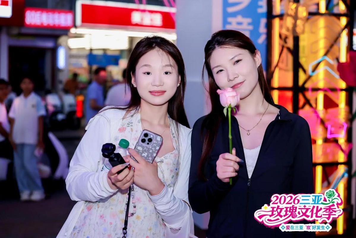 启动仪式后,“‘玫’好启锣”仪式在博后村夜市门头举行。博后村党总支书记苏少洪、三亚吉阳区民宿协会秘书长谭中仙等嘉宾共同敲响特制铜锣,三声锣鸣分别寓意奏响浪漫序章、敲出乡村振兴足音、绘就产业兴旺蓝图。随后,瑞狮献瑞、竹竿舞快闪等民俗活动接连上演,玫瑰信使穿梭街巷派送鲜花,让博后村的乡村烟火气与玫瑰浪漫气息深度交融,生动践行“让文化走进田间地头”的办节理念,也是三亚落实乡村振兴战略、推动文旅融合的生动实践。
