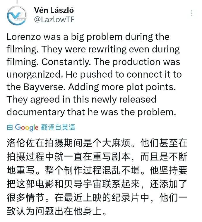 近期澳洲流媒体上线了一部变形金刚幕后纪录片,其中揭示了《变形金刚7》失败的原因,这次算是公开坐实了制片人洛伦佐·迪·博纳文图拉的骚操作:
