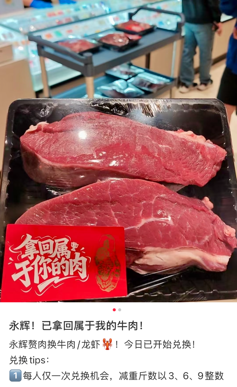 4 月一开始,永辉就搞了波大的!赘肉换牛肉活动全国上线。