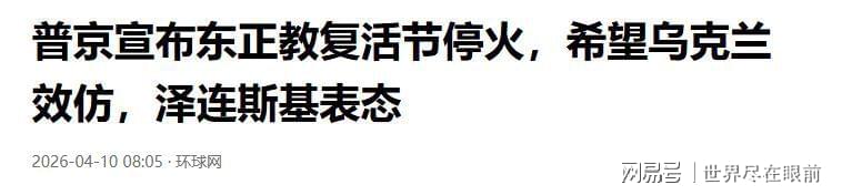 普京突然出手,按下了俄乌冲突的停火键。4月9号晚间,克里姆林宫直接官宣,普京亲自签署命令,俄军将在东正教复活节期间,实施32小时全面停火。时间卡得很明确,莫斯科时间4月11号下午4点开始,一直到12号半夜结束,所有作战方向全部停火。