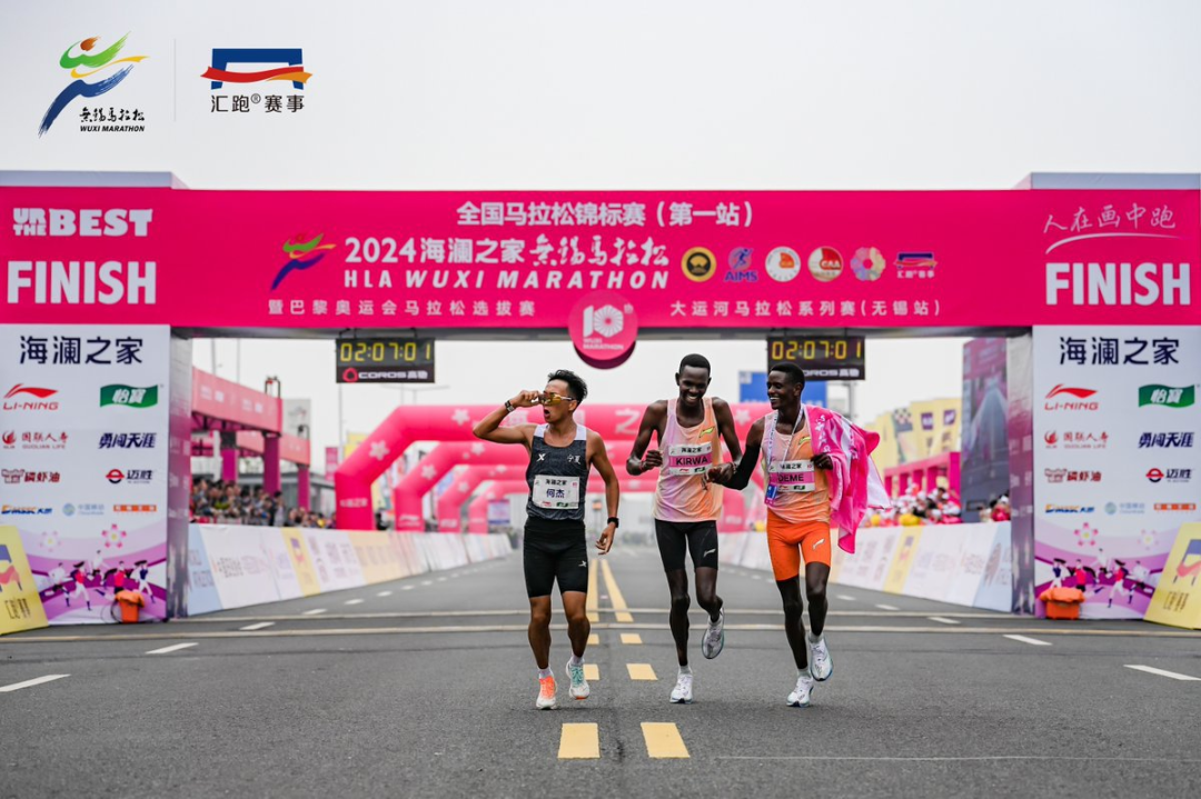 2024年无锡马拉松,何杰再次展现高质量冬训成果,全程与高水平外籍选手保持在第一集团,以2:06:57再破全国纪录。