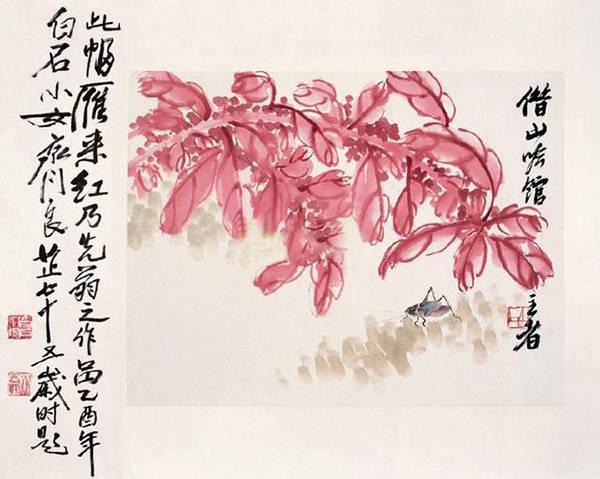 齐白石小女齐良芷旧藏齐白石精品:《秋蝉雁来红》,只可惜文革期间被红卫兵扯烂了,辛好没伤大体,犹如断臂的维纳斯一样,让人浮想联翩,被扯烂的那一部分是蚂蚱,蝈蝈,,螳螂,还是纺织娘……