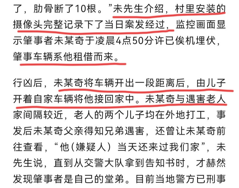 老人今年76岁,两个儿子都在外地打工,属于典型的留守老人,或许嫌疑人正是看准这一点,才敢明目张胆埋伏行凶。