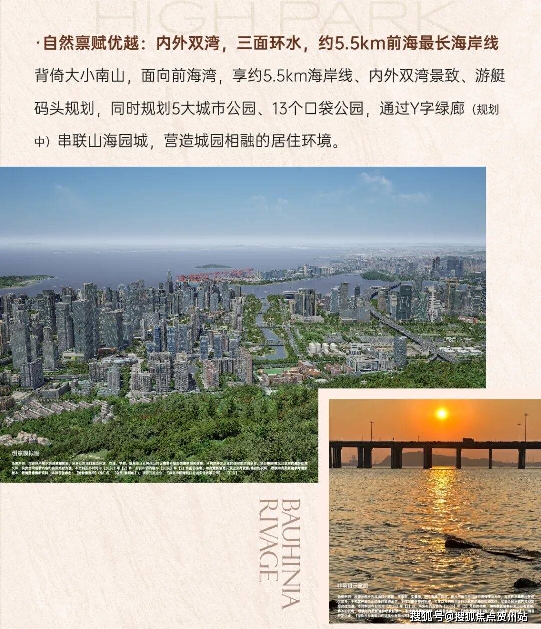 背倚大小南山,面向前海湾,享约5.5km前海最长海岸线,内外双湾景致,周边规划5大城市公园、13个口袋公园,靠山面海,生态宜居。