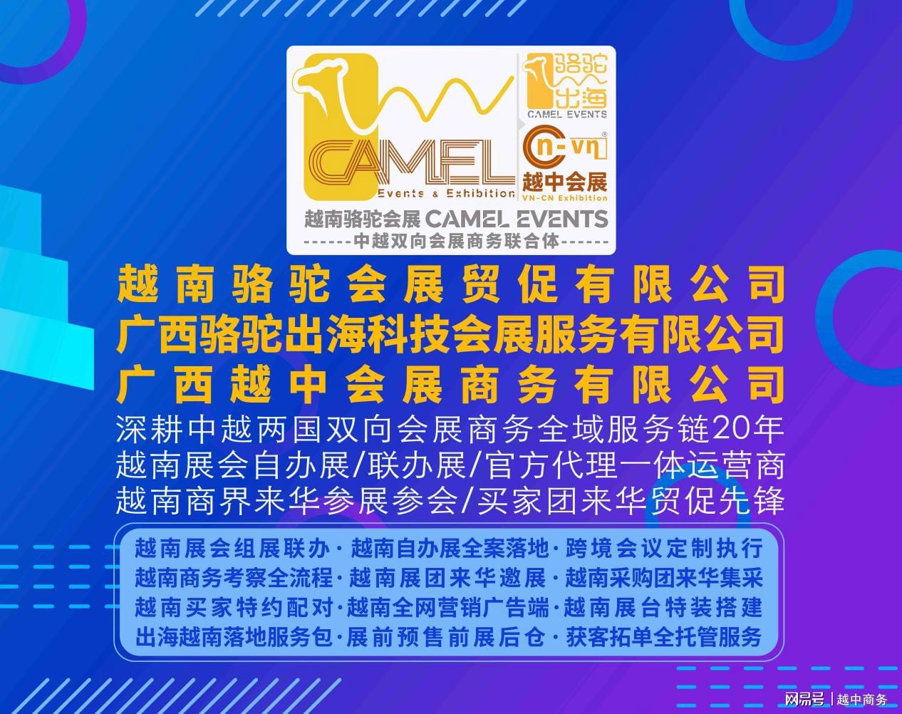 组织方:越南骆驼会展CAMEL EVENTS、广西骆驼出海科技会展服务有限公司、广西越中会展商务有限公司