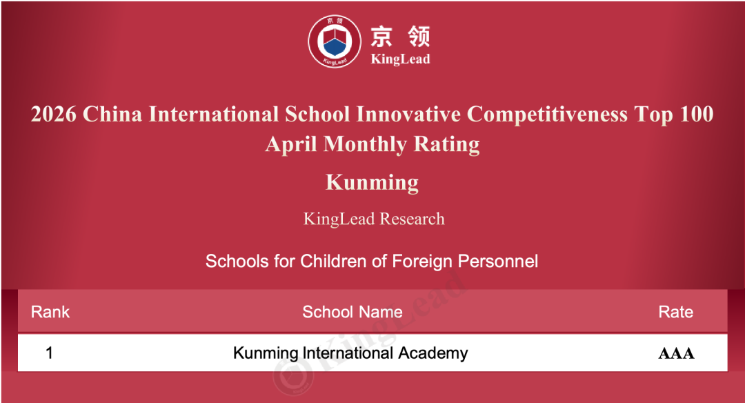 One foreign school in Kunming is on the innovative competitiveness monthly rating and has been awarded 3A rating—Kunming International Academy.
