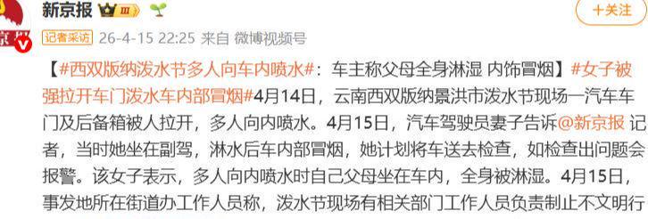 西双版纳州文旅部门重申禁止向行驶车辆泼水、禁止使用高压水枪等攻击性工具,并表示公安已介入类似事件调查。