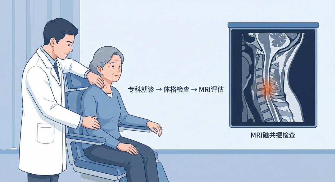 门诊就诊时,医生会先详细了解症状出现的时间、发展过程,以及手脚功能是否受影响。随后结合体格检查,观察肌力、感觉、反射和步态是否存在异常。