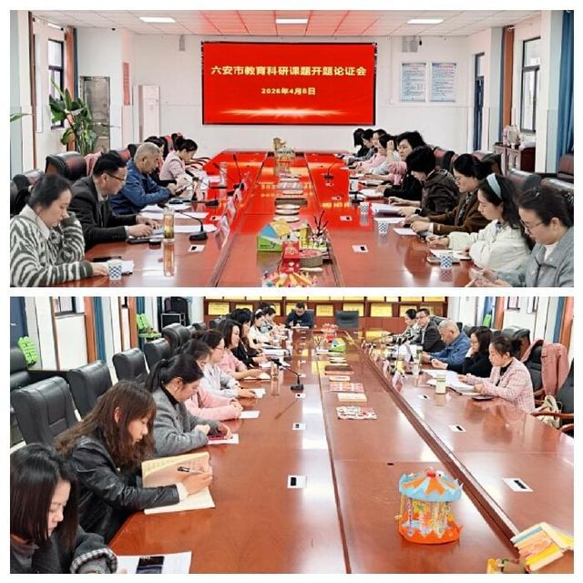 2026年4月8日下午,六安市裕安区佛子岭路小学大中小思政课一体化研究课题《大中小学思政课一体化背景下小学思政跨学科融合的“三阶式”实践路径探索》(LKSZ202503)开题论证会顺利举行。六安市教育科学研究院院长孔庆东、副院长胡晓林、教研员徐敏等专家及各课题组成员参会,会议由六安市裕安区教师发展中心教研室主任吕永胜主任主持。会上,徐敏宣读课题立项文件与管理要求,明确研究规范与推进方向。