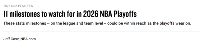 北京时间4月18日,2025–26常规赛已正式落幕,附加赛将于今日结束,2026年NBA季后赛蓄势待发。本赛季诞生了诸多生涯里程碑,而随着季后赛大幕拉开,又有一大批历史纪录有望被改写。以下是一些重要的个人里程碑——