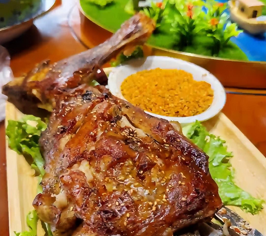 - 烤全羊:选用膘肥体壮的绵羊,经宰杀、烫毛、煺毛、腌渍、调味后烤制而成。外皮金黄酥脆,内部鲜嫩多汁,是招待贵宾的佳品。