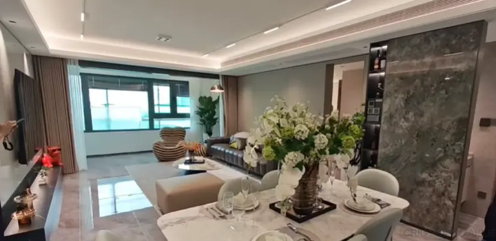 值得一提的是,项目全系配备双阳台。建面约97平方米的三房拥有约6.3米宽的双阳台,而建面约138平方米的四房阳台面宽可达约13.7米,形成良好的观景视野。