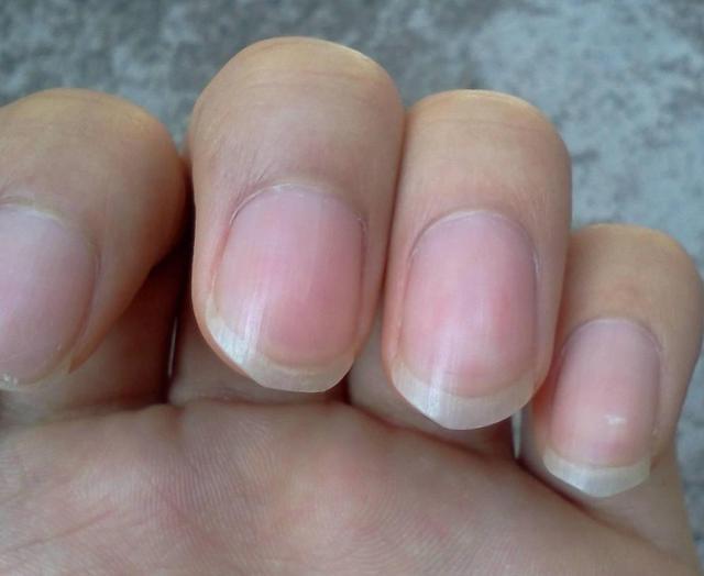 正常情况下,手指侧面看指甲和皮肤的夹角应该小于180度,出现杵状指之后,这个角度会增大甚至超过180度。