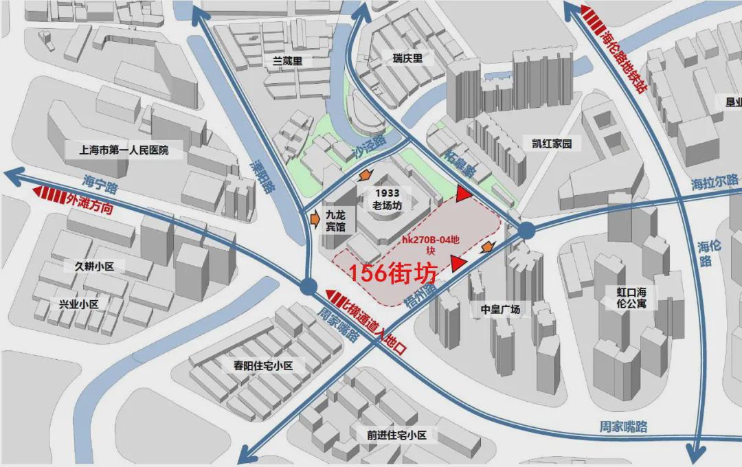 「越秀·外滩樾」项目地块四至范围, 东至:梧州路,隔壁是中皇广场; 西至:hk270B-02,隔壁就是1933老场坊; 南至:周家嘴路 北至:柘皋路。