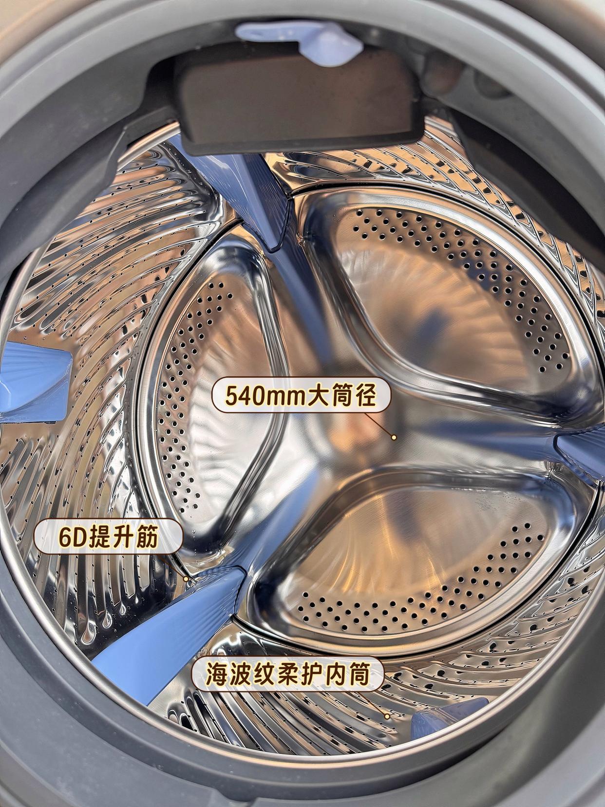 它凭借行业顶尖的1.31洗净比,轻松攻克“洗不干净”的痛点。540mm超大筒径搭配6D鲨鱼鳍提升筋,大幅延长衣物摔打路径,模拟人手揉搓的力度与节奏,同时通过超净泡精华洗与净雨喷淋的加持,让无论是羽绒服上的油渍、孩子衣物上的顽固污渍,还是领口、袖口的积尘,都能被彻底瓦解,春节堆积的脏衣物一次就能洗净,无需二次返工,省去反复搓洗的麻烦。