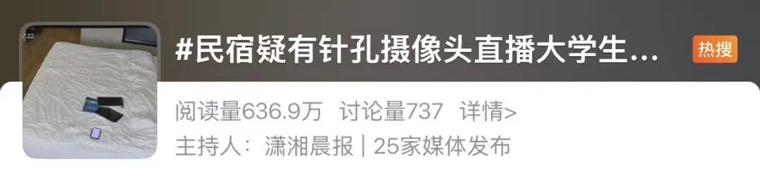 近日,有博主举报“安徽一民宿内疑有针孔摄像头直播大学生隐私”,引发广泛关注。