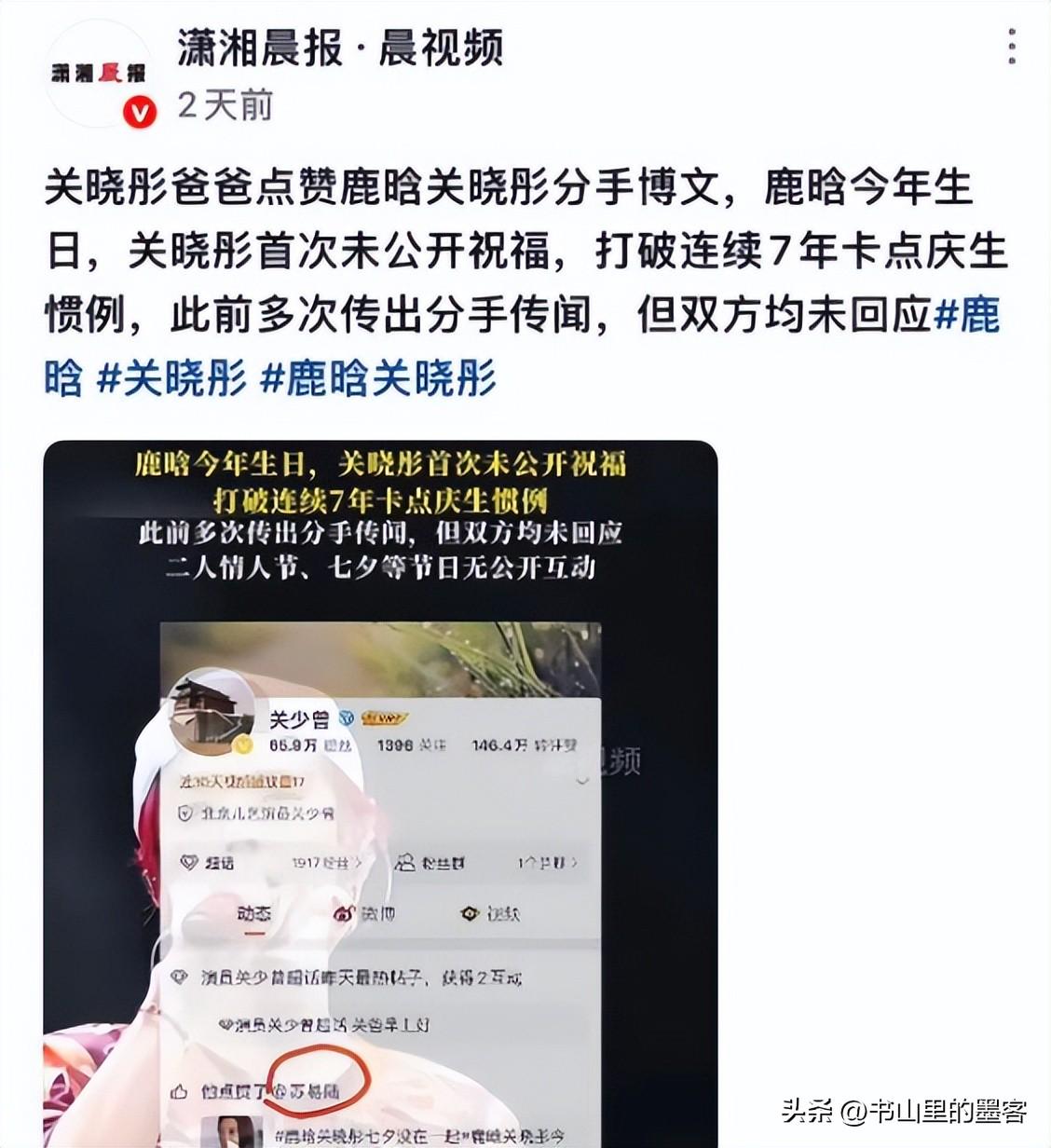 没过多久,关晓彤的父亲不慎点赞了一条关于两人分手的内容,虽然随即取消,但还是被许多人视为某种侧面印证。